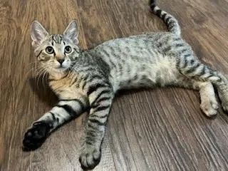 Hi I am Fieri! I am a little tabby that I share a name with the famous chef, but my real specialty is serving up cuddles and playtime. I am always the first to investigate, the first to pounce, and the first to dash into new adventures with my siblings, Flay and Nigella. After a good round of zoomies, I will happily melt into your arms or curl up in your lap, purring my way straight into your heart. Equal parts playful adventurer and snuggly sidekick, I am the perfect blend of energy and affection. While my namesake takes you to Flavortown, I will take you straight to Snuggle City.
